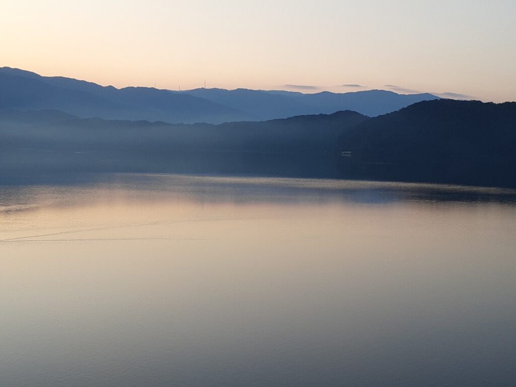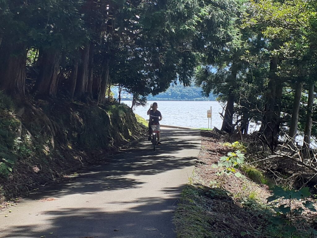 実は去年の8月にもここに来ていて、その時はサイクリングで湖を半周しました。コロナの影響か他に人影は無く水月湖を独り占めし、ちょっとした探検気分を味わえました。 次回はシーカヤックにもチャレンジしたいと思っています。